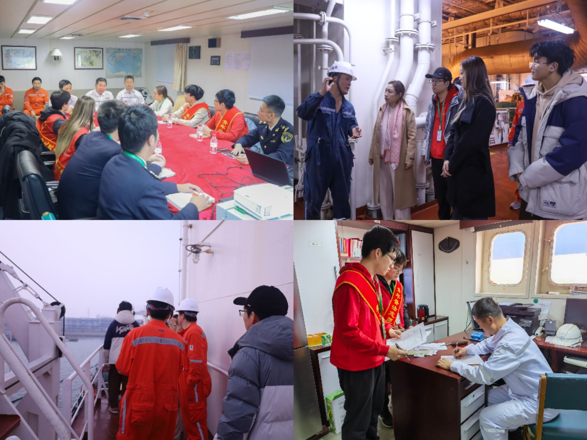 随后,在船员的带领下,志愿者们参观了甲板和机舱,深入了解船舶的运作机制和设备,感受到了船舶操作的复杂性和专业性,和船员长期航行工作的辛苦。最后,学生志愿者还对船上各岗位工作人员开展了问卷回访,全面了解船员对海事法律知识的理解和需求,并将问卷交由盘锦海事局的工作人员进行后续跟进和反馈。