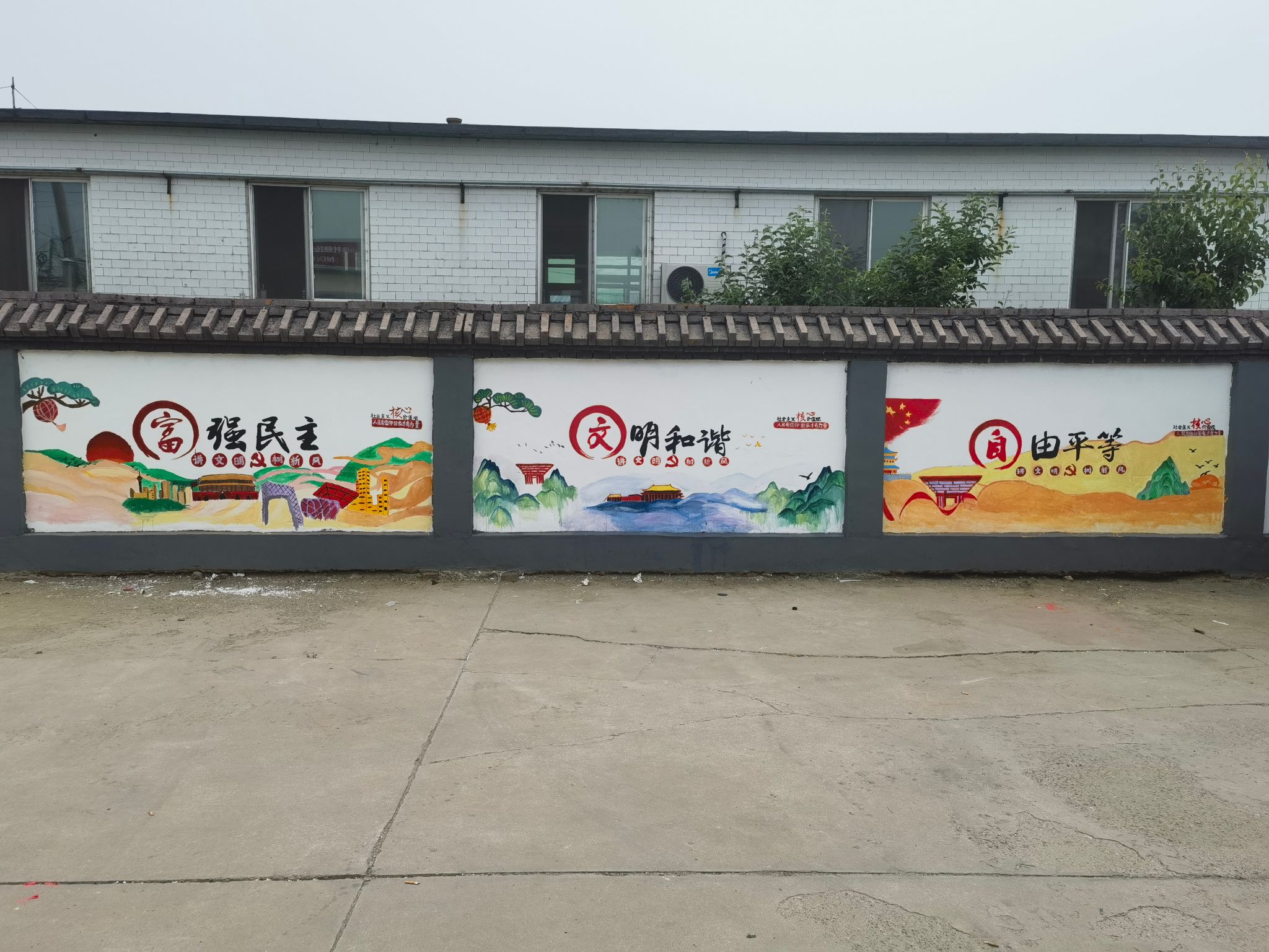 学院借助美育工作室宣传平台面向校区各学院招募了学生党员、入党积极分子等墙体彩绘志愿者12人。墙体彩绘以社会主义核心价值观为主题,计划绘制7幅,总长20米。其中第一期墙体彩绘共完成3幅,学生志愿者们在近三个小时的绘画过程中,也亲身感受着新时代社会主义农村日新月异的变化。墙体彩绘二期工程将于9月开学后继续进行。