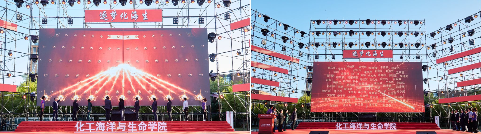 在随后的新学期启动仪式中,学院领导与师生代表共同按下象征开启新学期的启动按钮,1128名新同学的名字在屏幕上缓缓亮相,带领新生同学们共同开启“大学之门”。