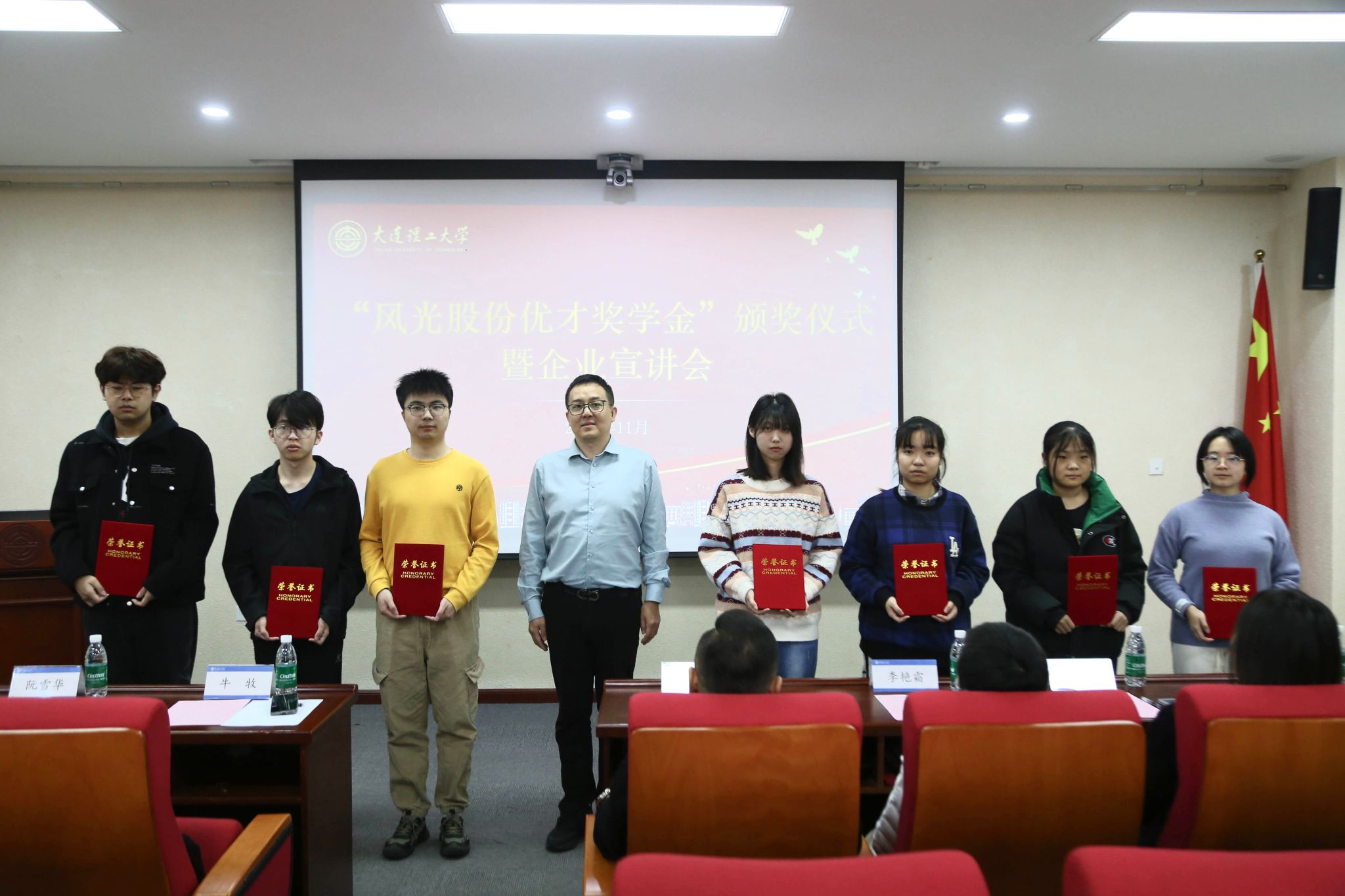 11月20日,化工海洋与生命学院“风光股份优才奖学金”颁奖仪式暨企业宣讲会在学院报告厅举办。营口风光新材料股份有限公司研发中心主任牛牧、技术总监杨明成、人事经理李欣妍、科管经理尹斌、研发经理李艳霜,化工海洋与生命学院相关领导老师参加了颁奖仪式。
