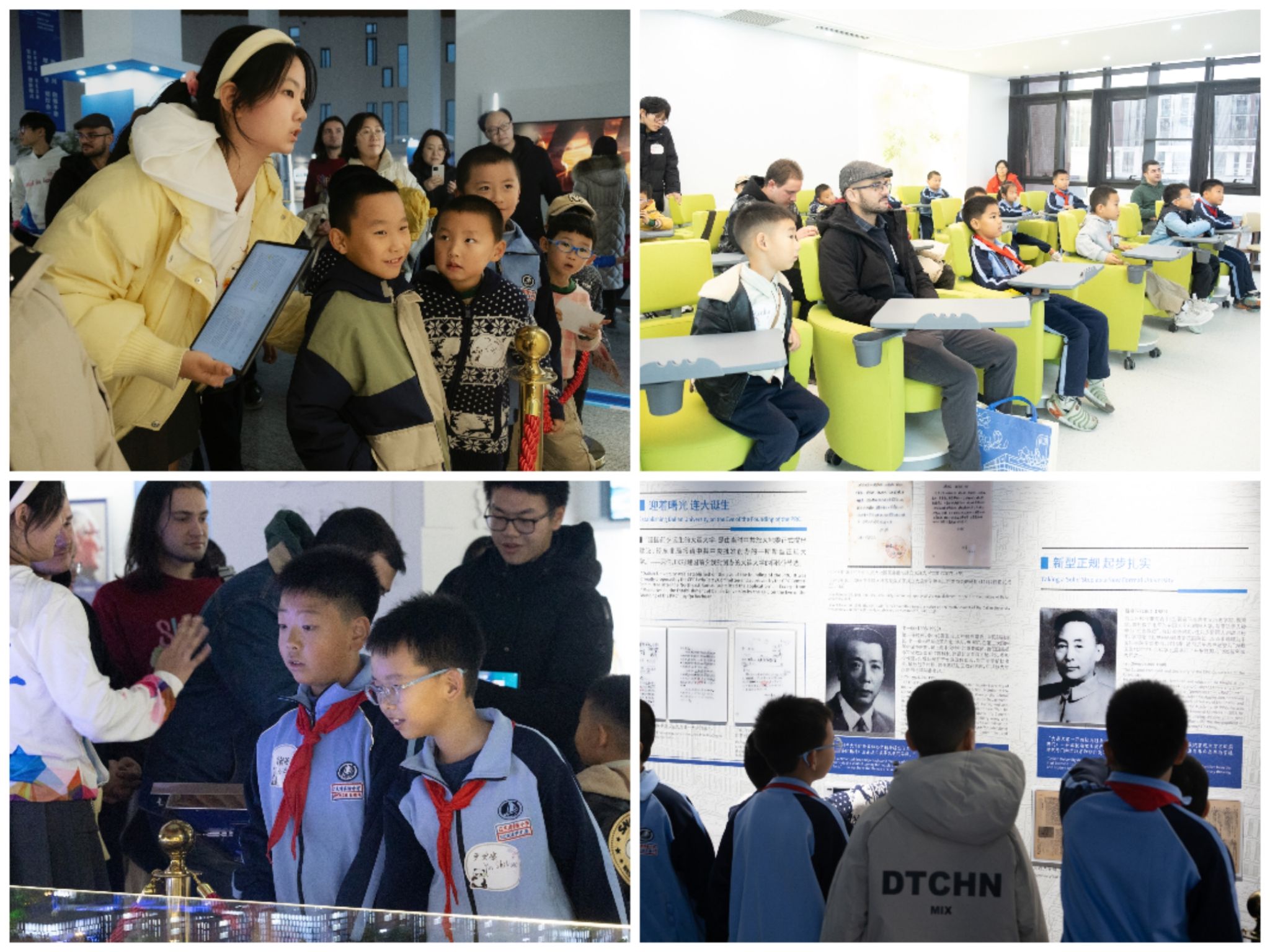 随后,一行人来到校史文化展厅,志愿者们通过中英文切换,为留学生和孩子们讲述大工的故事,将大工的历史与大工精神传递给更多人。活动结束后,大家一同移步至报告厅观赏了精彩纷呈的“缘莱是理”国际师生文艺晚会。