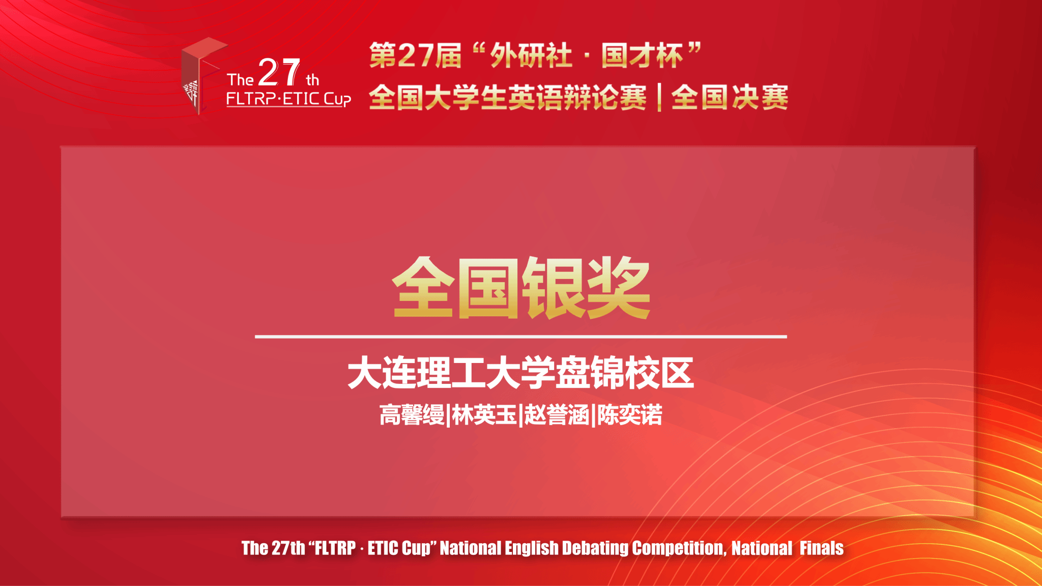 5月31日,第27届“外研社·国才杯”全国大学生英语辩论赛全国决赛以线上会议形式盛大启幕。经过两天八轮循环赛的精彩角逐,代表大连理工大学盘锦校区参赛的公共基础学院2023级商务英语专业本科生赵誉涵、陈奕诺最终斩获全国银奖!