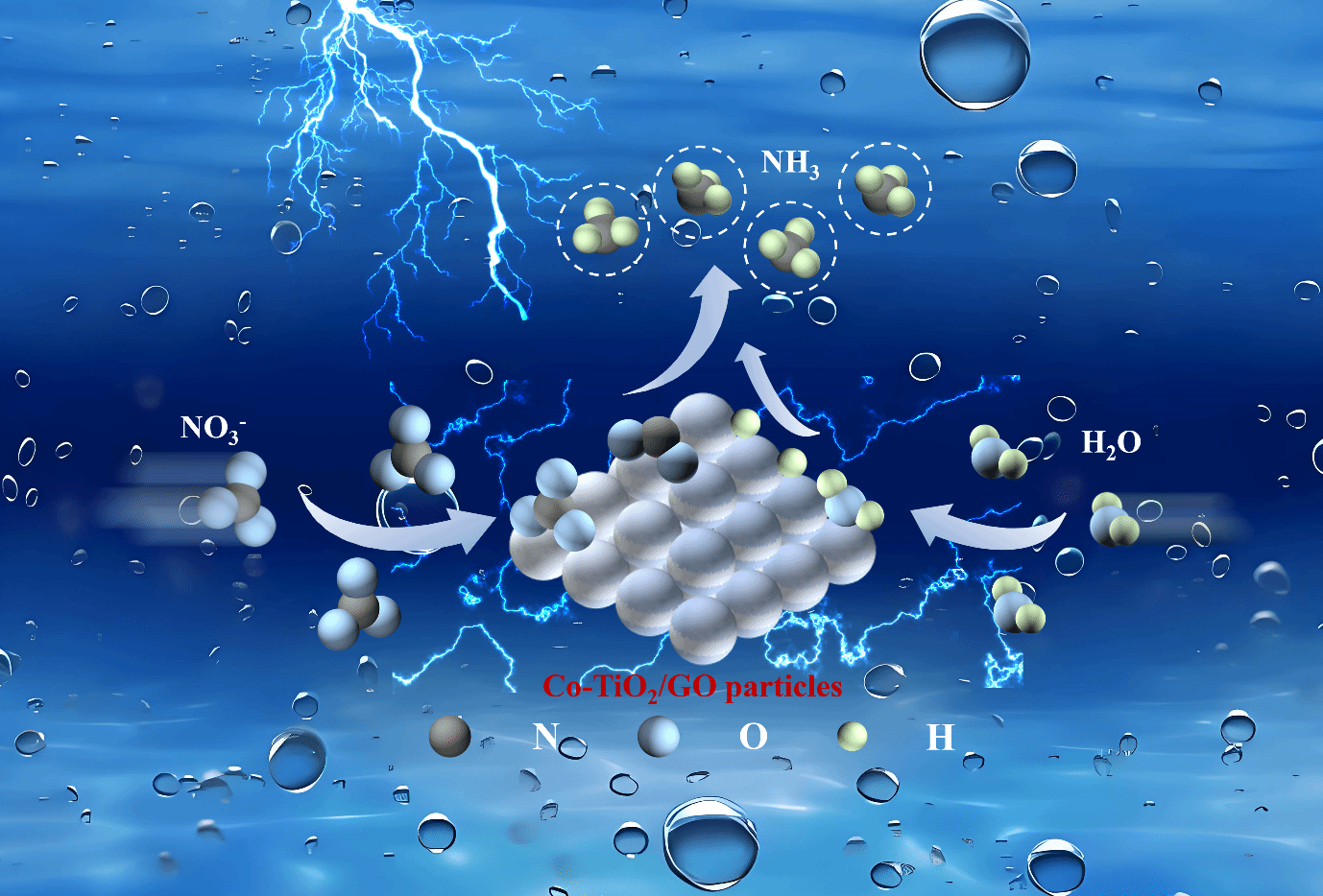 化工海洋与生命学院本科生林培琰、莱斯特国际学院本科生陈仁鸿等的《高效Co和GO共掺杂TiO2催化剂电化学还原硝酸盐制氨》研究项目,在刘安敏副教授的指导下,不断探究电催化合成氨机理和催化剂组成、形貌等对其催化活性的影响机制,降低其合成氨的反应能垒,提高其NRR催化性能,成功设计出了具有优秀合成氨性能的Co-TiO2/GO催化剂。