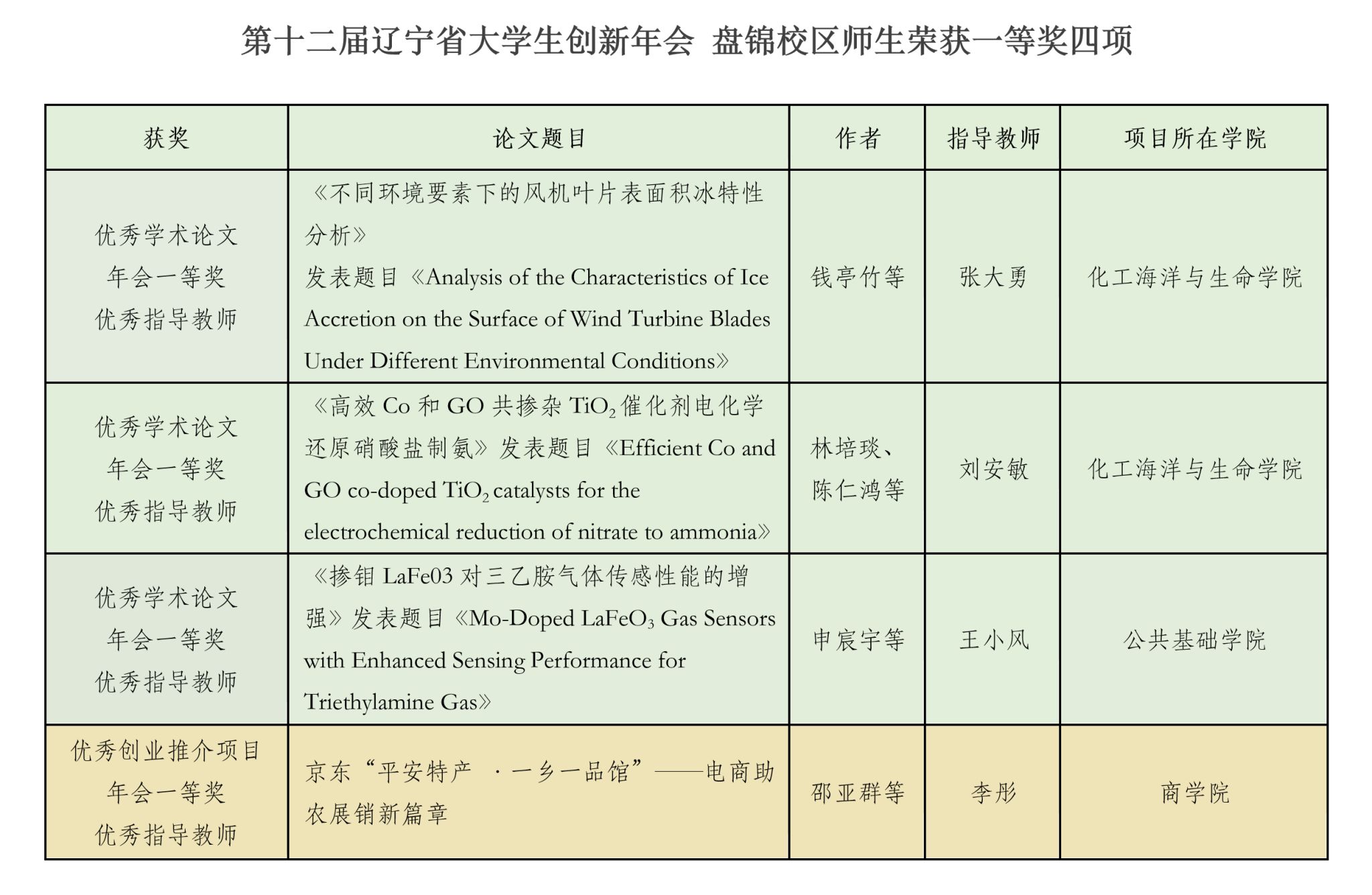 近日,由辽宁省教育厅主办、辽宁师范大学承办的第十二届辽宁省大学生创新年会在大连举行。作为全省高校展示创新教育成果的重要平台,本届年会共有来自59所高校的446项优秀作品入选并进行展示交流。盘锦校区师生共获得一等奖4项、优秀指导教师奖4项、优秀学术论文3篇,展现了校区在学生创新实践能力培养方面的显著成效。
