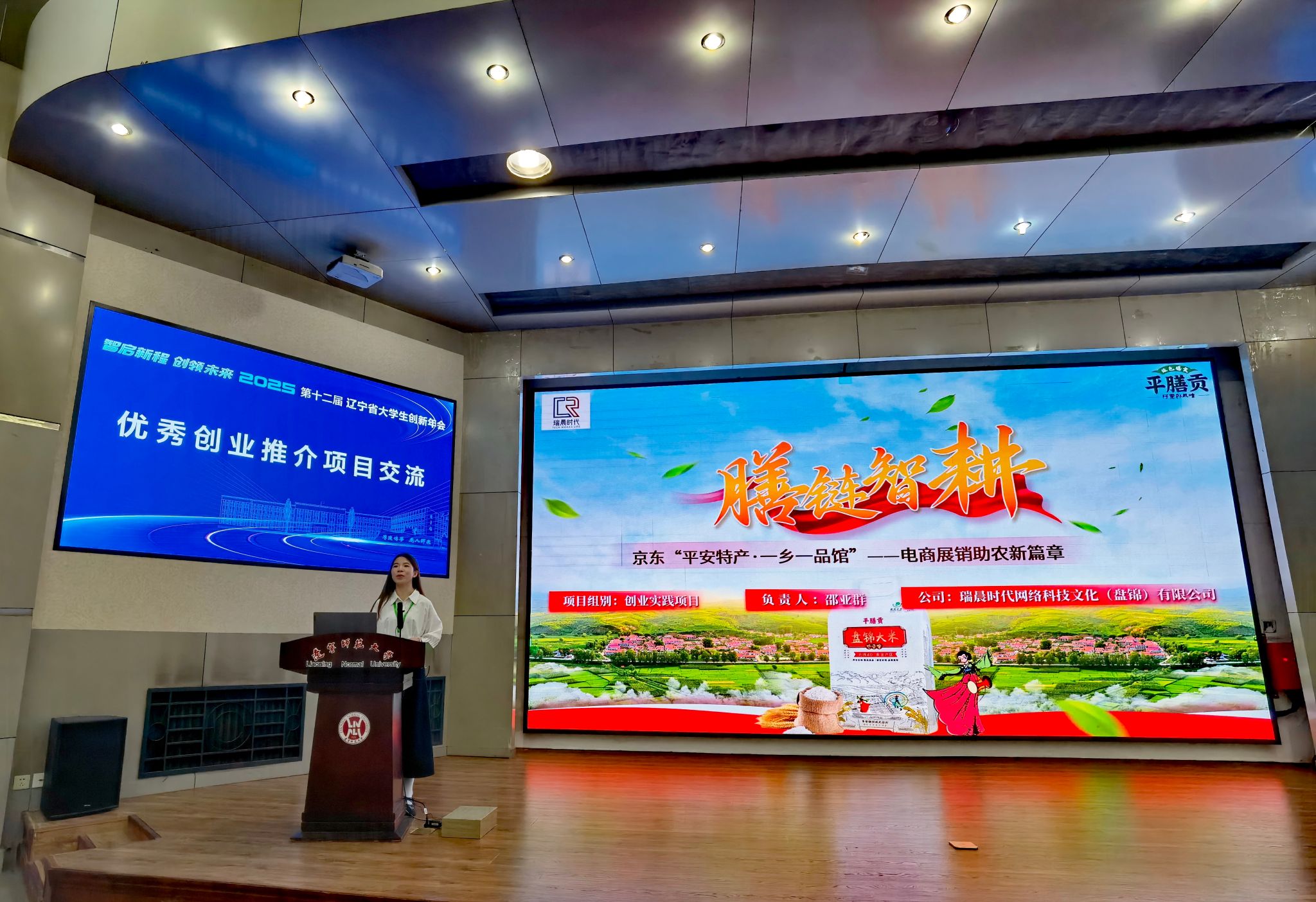 商学院本科室邵亚群等的《京东“平安特产·一乡一品馆”——电商助农展销新篇章》项目,在李彤教授的指导下,通过京东中国特产馆平台(京东中国特产馆·平安镇馆),助力大洼区平安镇重点推广销售“平膳贡”盘锦大米等地方特色农产品,在帮助提升其品牌影响力和市场销量方面取得显著成效。该项目还被选为本届年会闭幕式上唯一进行推介的创业项目,获得与会专家的一致好评。