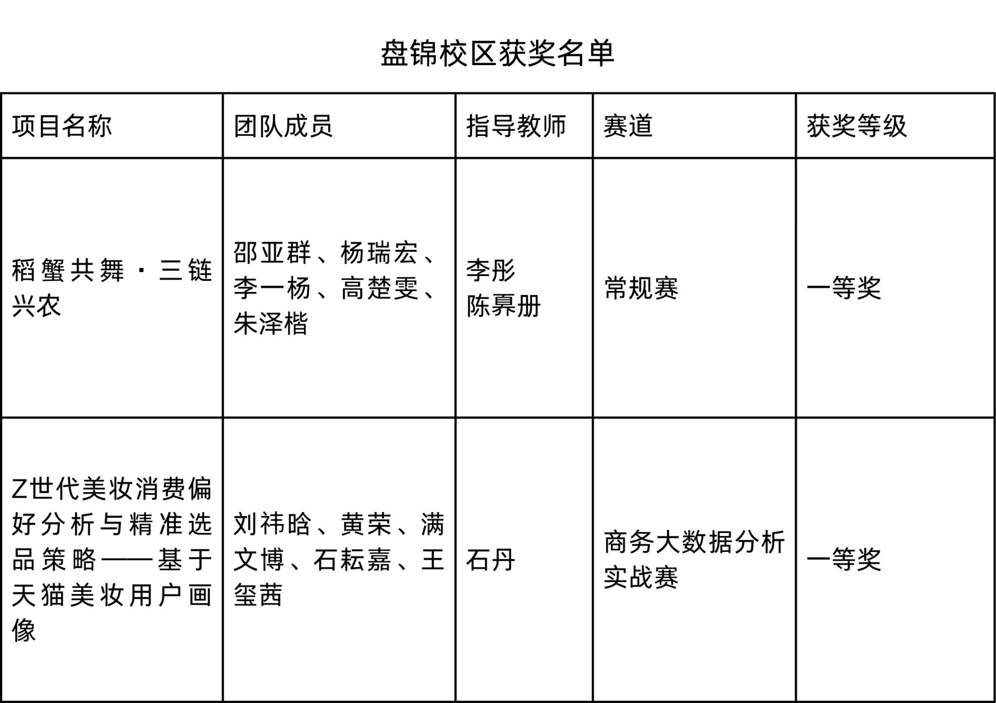 经过校赛、省赛的层层选拔,来自盘锦校区商学院的2支团队晋级全国总决赛,最终,两支团队凭借创新的项目设计、清晰的商业模式和出色的现场答辩,赢得评委高度认可,双双荣获全国一等奖。