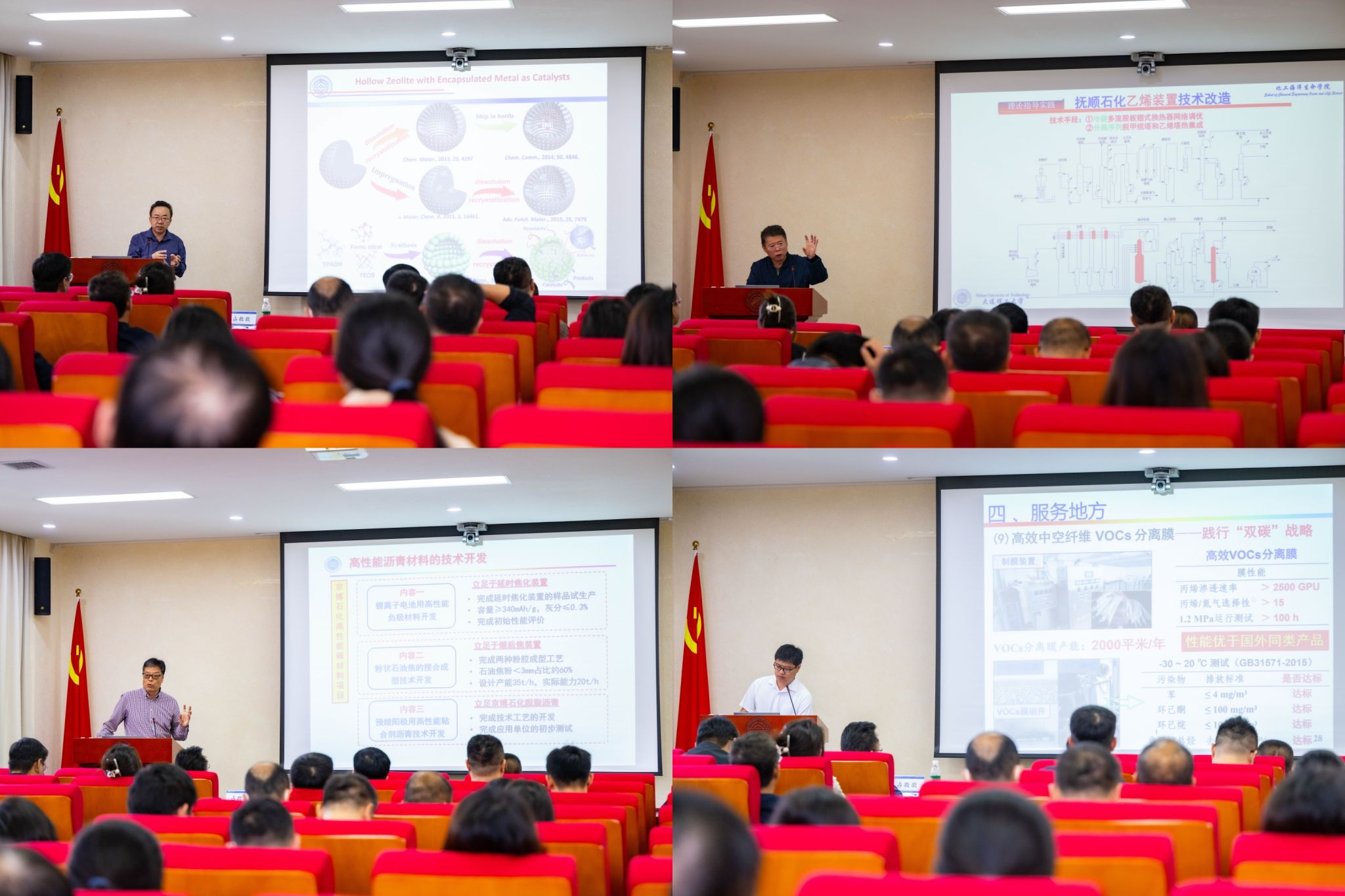 化工学院董宏光教授、申凯华教授,化工海洋与生命学院郭新闻教授,盘锦产业技术研究院科技开发部副部长杨晓航分别做了科技成果推介。