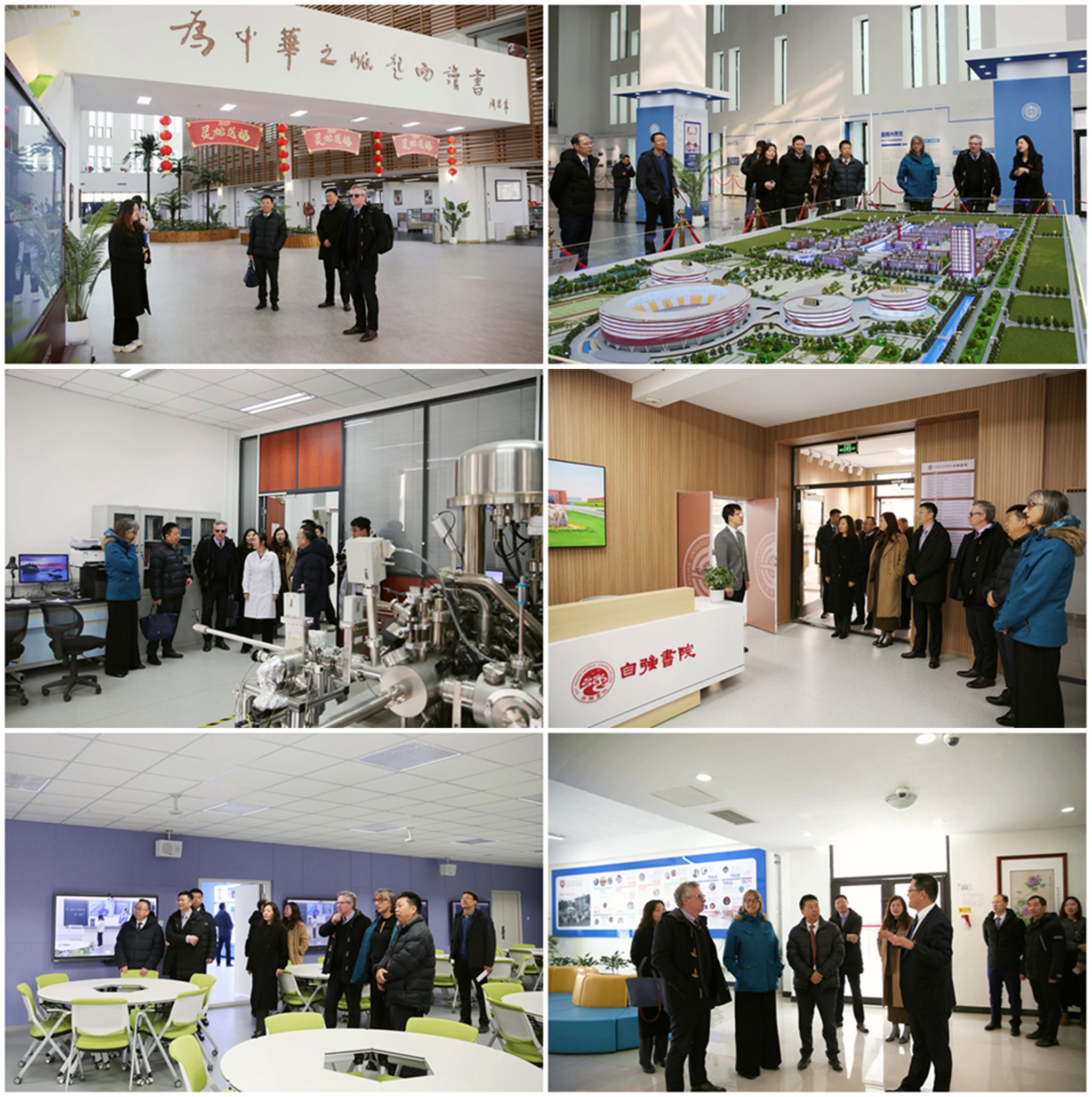 座谈后,马克·哈维一行在占敬敬陪同下,先后参观了图书馆、校史文化育人基地、分析测试中心、自强书院、未来学习中心和莱斯特国际学院。