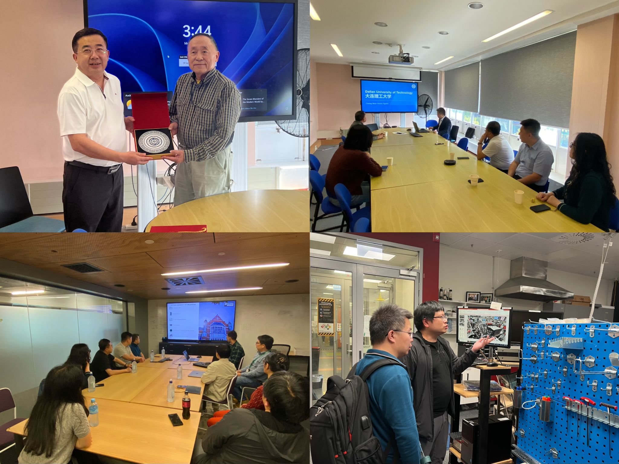 在惠灵顿维多利亚大学,团队与科学与工程学部、外事部门、科研机构负责人及教师代表座谈,就双方前期已开展工作进行了梳理总结,并就联合培养的具体举措交换意见。进一步明确未来合作机会,围绕两校现有合作项目深入研讨,团队还参观了研究生教研室、科学与工程学部实验室,详细了解相关团队的研究方向及科研前景。