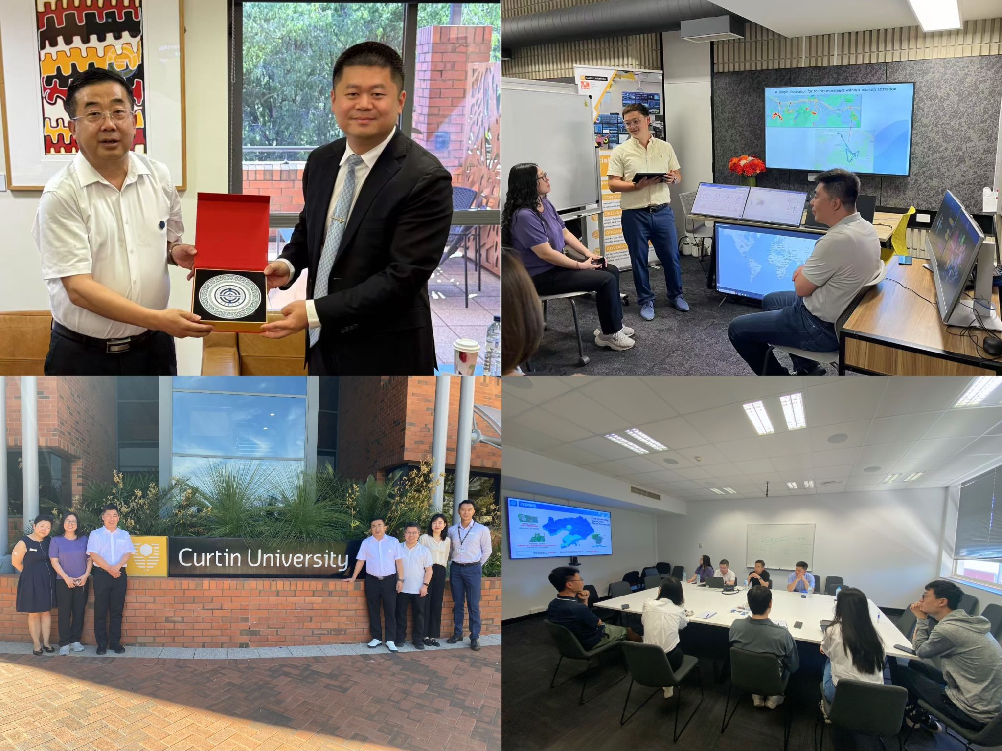 在科廷大学,团队受到常务副校长Xiaotian Zhang的热情接待,并与国际伙伴关系主任Nigel de Silva、国际事务顾问Grace Ang,以及工学部、商学院教师代表进行座谈。双方探讨了学生长期交换项目,并围绕科廷大学在新加坡等地的海外校区深入交流,分享国际化校区建设经验。双方表示愿以本次会面为契机,共同推动在教学、科研等方向的合作共赢。在我校校友宋思文的引领下参观调研了创客空间、设计学院、社交媒体研究实验室、税务诊所。