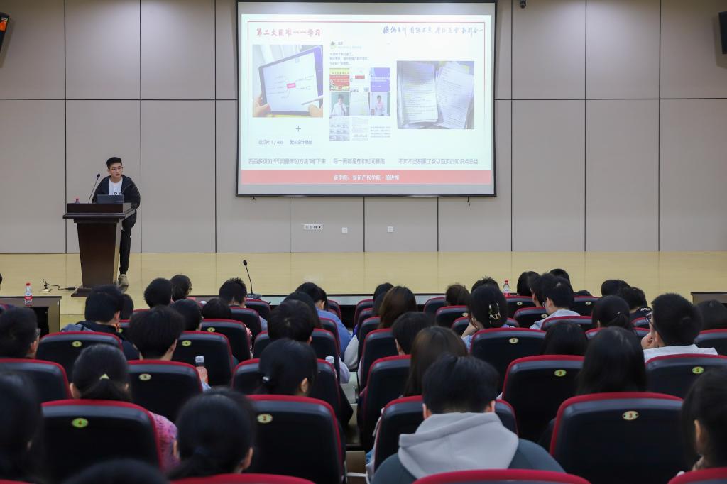 在提问环节,现场同学积极参与,踊跃提问。对于如何科学管理课余时间问题,徐若竹同学建议大家要分清轻重缓急,有针对性地将事情一件一件做好。被问到遇到困难时如何调整心态时,浦进博同学希望大家选择坚持,坚持下去最坏的结果也就是失败,而放弃的结果则是一无所获。两位同学简单质朴的话语给现场同学留下深刻印象,引人深思。