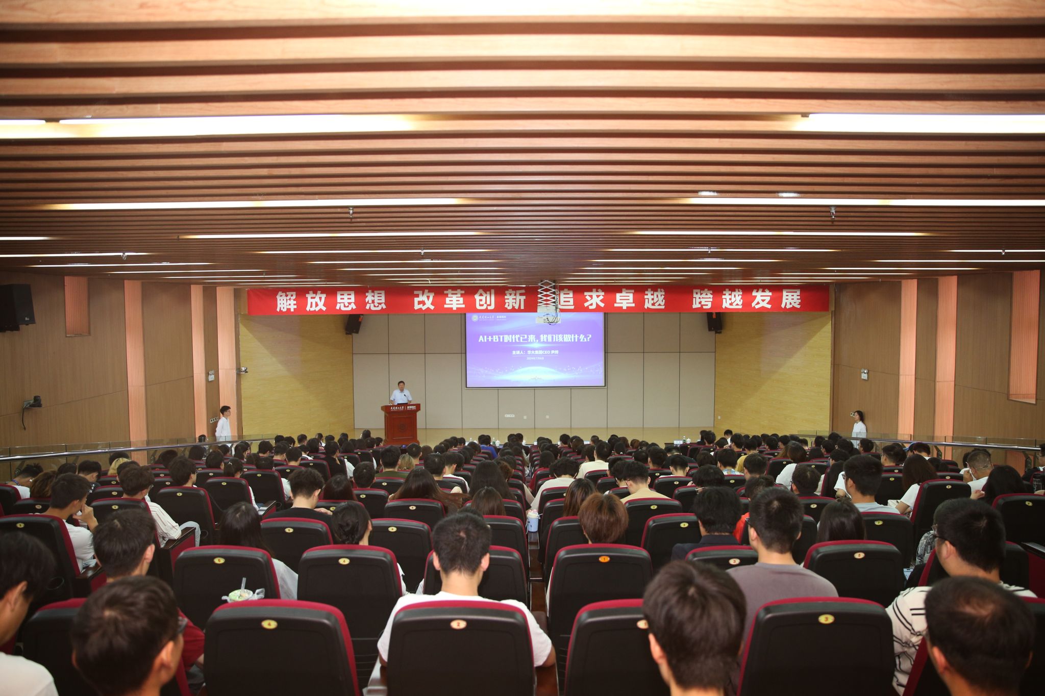 7月6日上午,第254期“百川讲堂”盘锦校区专场暨第八期“辽东湾讲坛”在校区G01报告厅举行。我校知名校友、华大集团CEO尹烨先生以“AI+BT时代已来,我们该做些什么?”为主题带来了一场科学盛宴。校区师生近300人现场聆听讲座。讲座由校长助理兼盘锦校区管委会主任占敬敬主持。