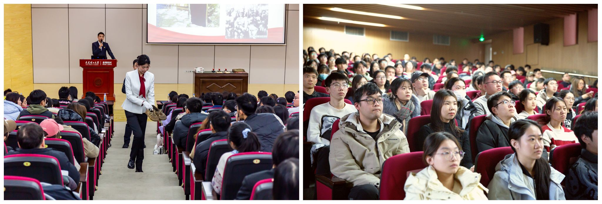 11月27日下午,盘锦校区第九期“辽东湾讲坛”在行政服务楼报告厅举行。“九·一八”历史博物馆红色印记宣讲团主讲“讲述‘六地’故事,点亮红色辽宁”。校区干部教师代表及学生共200余人现场聆听讲座。
