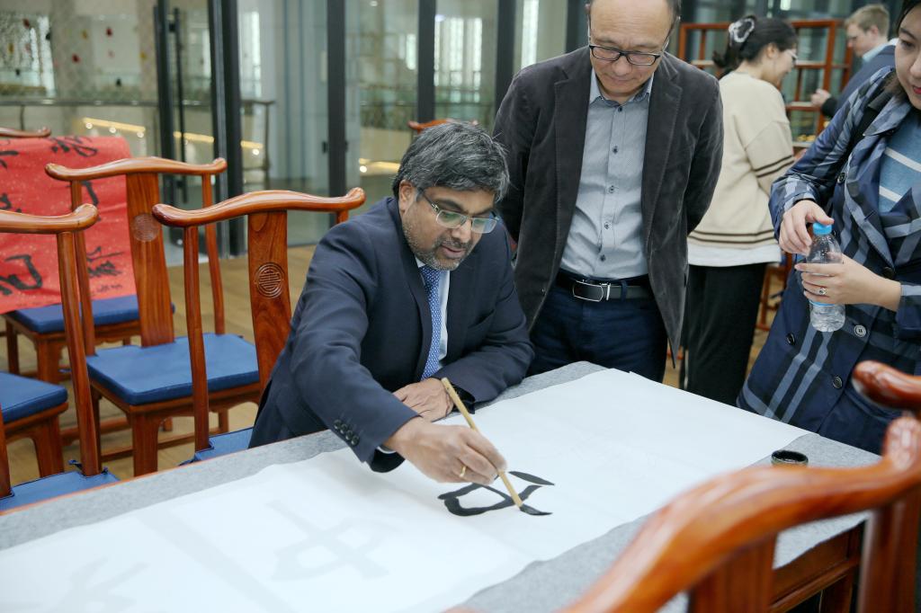上午,尼山·卡纳戈瑞迦校长一行先后到莱斯特国际学院、图书馆盘锦校区分馆和分析测试中心等地参观,深入了解校区及莱斯特国际学院办学情况。在莱斯特国际学院参观期间,尼山·卡纳戈瑞迦校长亲切看望了英方派遣教师,了解他们在学院生活、工作中的困难,并对他们辛勤的付出表示感谢。