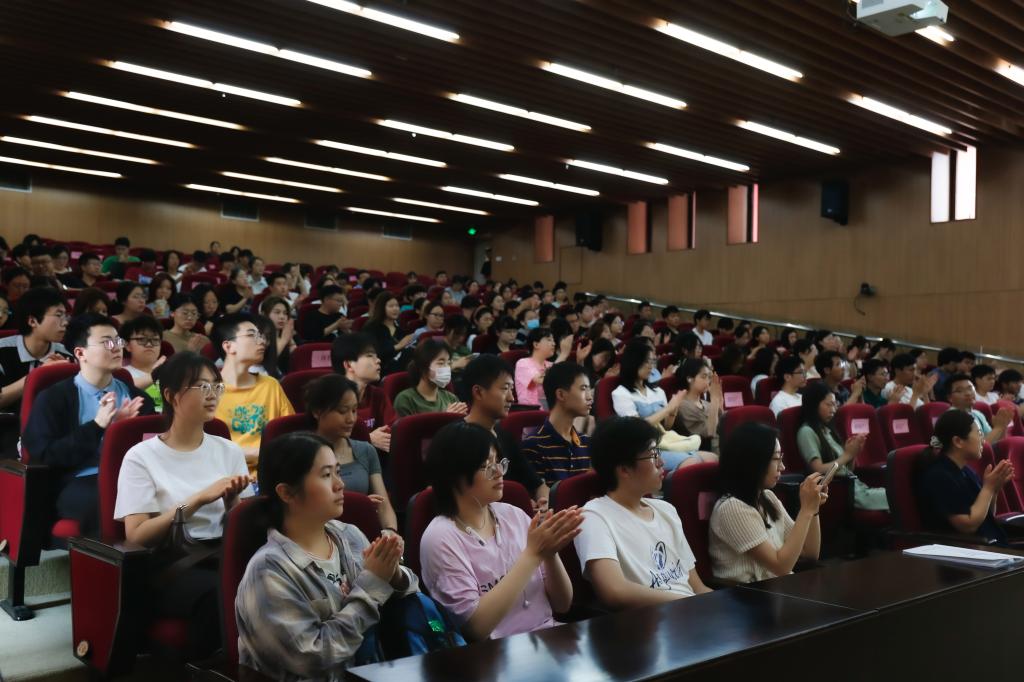 曲建武教授以“在青春的赛道上跑出最好的成绩”为题展开报告。从爱国、爱党、学习、奉献等关键词切入,从古至今,由国内至国外,用鲜活的历史人物和生动的党史故事讲述着一代代中国青年的奋斗故事。“立足新时代新征程,中国青年的奋斗目标和前行方向归结到一点,就是坚定不移听党话、跟党走,努力成长为堪当民族复兴重任的时代新人。”曲建武教授结合自己的亲身经历、用所带学生的成长故事让大家感受到用脚步丈量祖国大地,才能在火热实践中绽放青春梦想;用眼睛发现中国精神,才能在纷繁复杂中筑牢信仰基石;用耳朵倾听人民呼声,才能汲取无穷智慧和力量;用内心感应时代脉搏,才能将小我融入大我,实现人生价值。