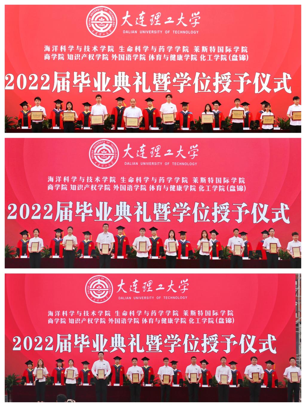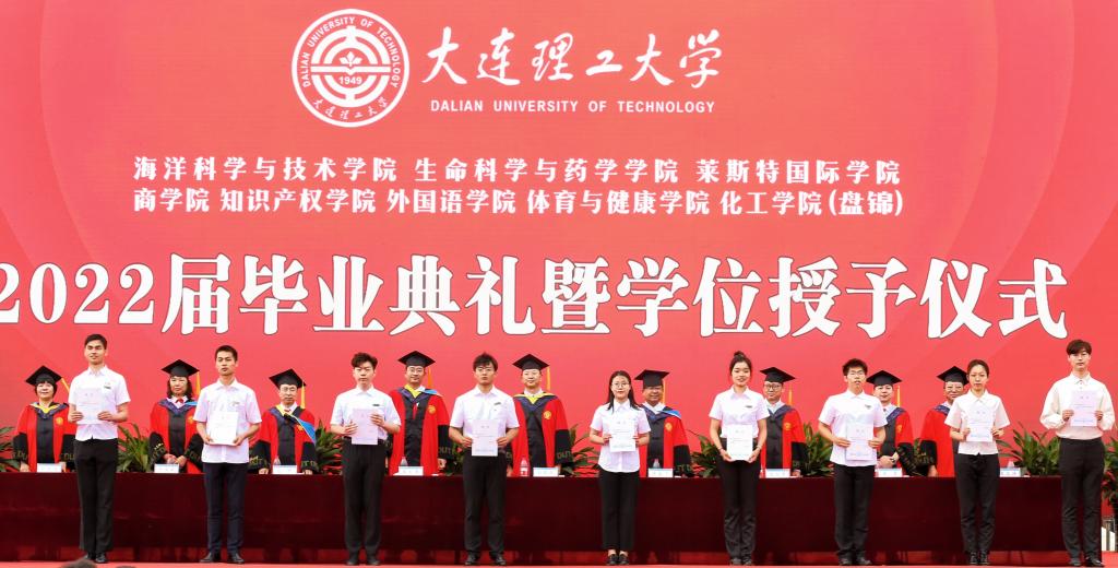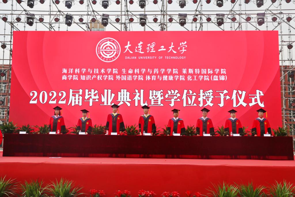 典礼上,校区及各学院领导为2022届毕业生班级联络人代表颁发聘书。2022届毕业典礼在全体齐唱大连理工大学校歌中结束,各学院(分院)依次开展学位授予仪式。