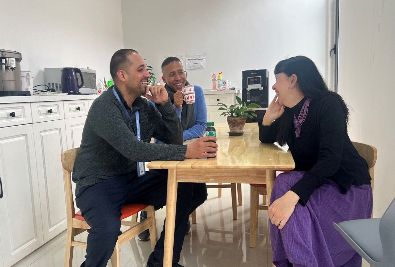 秉承育人为本的理念,校区采取了一系列举措保障外方教师在盘锦高质量开展教育教学工作。校区不仅提供了优越的、符合外方工作习惯的办公环境与办公软硬件设施,还建设有功能性的研讨空间,方便外方教师与学生开展一对一辅导或多人研讨。