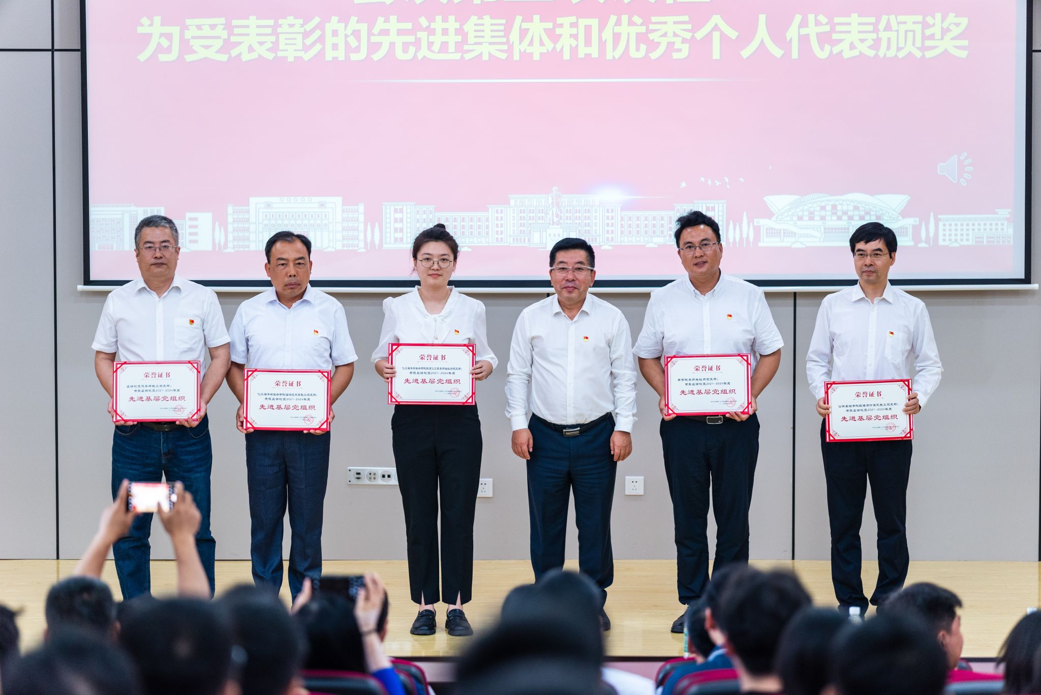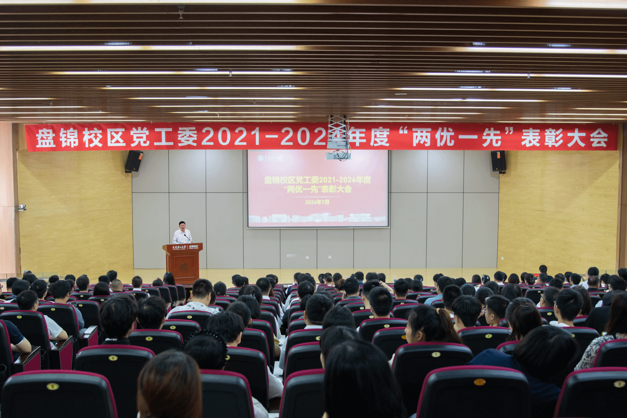 近日,盘锦校区党工委在G01报告厅召开2021-2024年度“两优一先”表彰大会,庆祝中国共产党成立103周年,对校区涌现出的优秀共产党员、优秀党务工作者和先进基层党组织进行表彰。党委常委、副校长兼校区党工委书记罗钟铉,校长助理兼校区管委会主任占敬敬,校区党工委管委会班子成员,各学院及管理服务机构负责同志和校区师生党员代表参会。