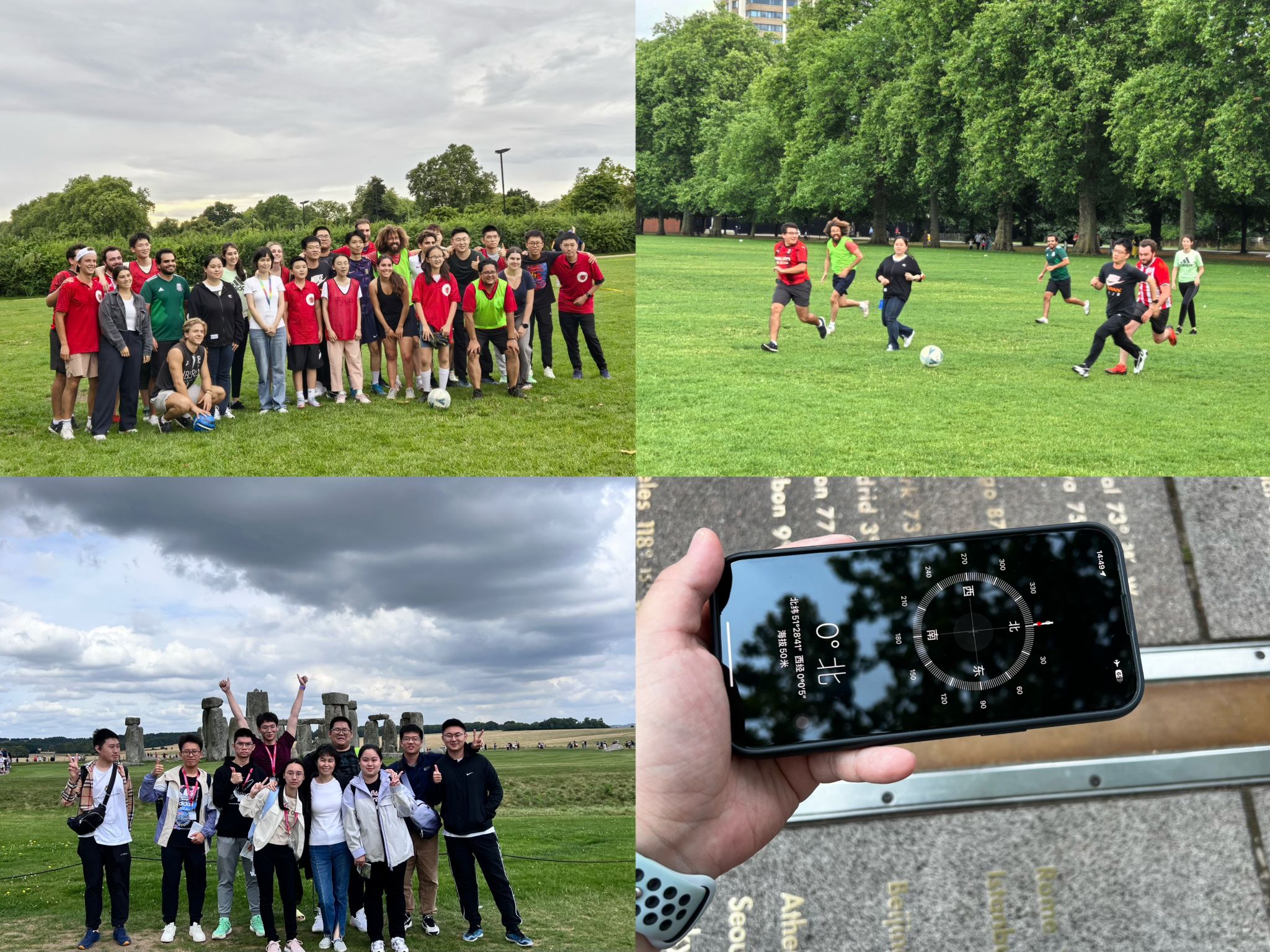 在理论学习与工厂实习之余,帝国理工学院也为访学团安排了文化交流活动。首先开展的是足球交流赛,同学们与来自帝国理工学院和墨西哥的学生相互组队,这场足球赛不仅是一场竞技,更是一次通过足球运动连接多元文化的合作。访学团还参观了英国的几大标志性历史建筑,如巨石阵、格林威治天文台等,巨石阵,这个史前时代最神秘的遗迹之一展现出古人对天文的精妙运用,让大家切身感受到古人智慧的结晶;师生们在格林尼治天文台探索其历史,了解了格林威治时间的由来,感受到了人类对宇宙探索的无限热情。
