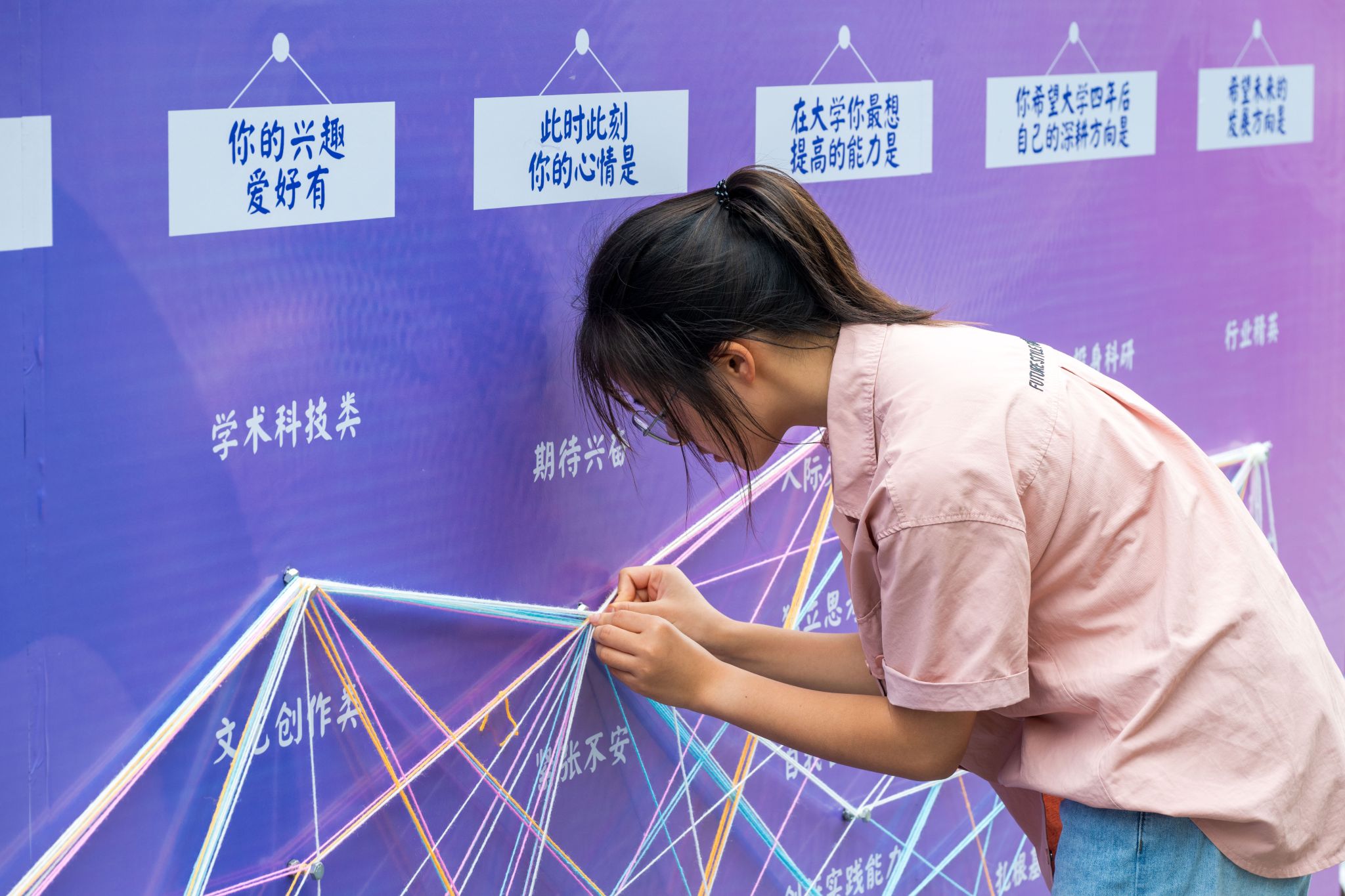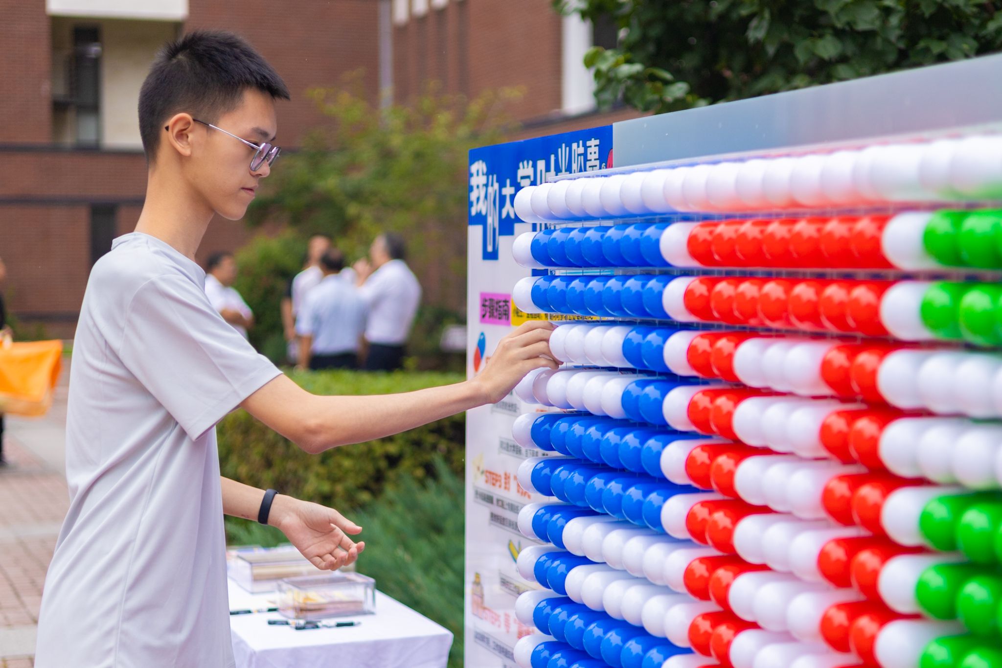 自强书院和各学院迎新服务各具特色。新生入学报到打卡计数板随着一名又一名新生的到来快速跳动;用彩线连结心愿,勾勒出梦想的大学生活;充满仪式感的“时光胶囊”自助封存,让时光邮局慢递未来的期许……校园学生志愿讲解团热情饱满,在精心设计的游览路线上,引领新生和家长打卡校区重要功能区域和特色文化景观,沉浸式体验校园生活。